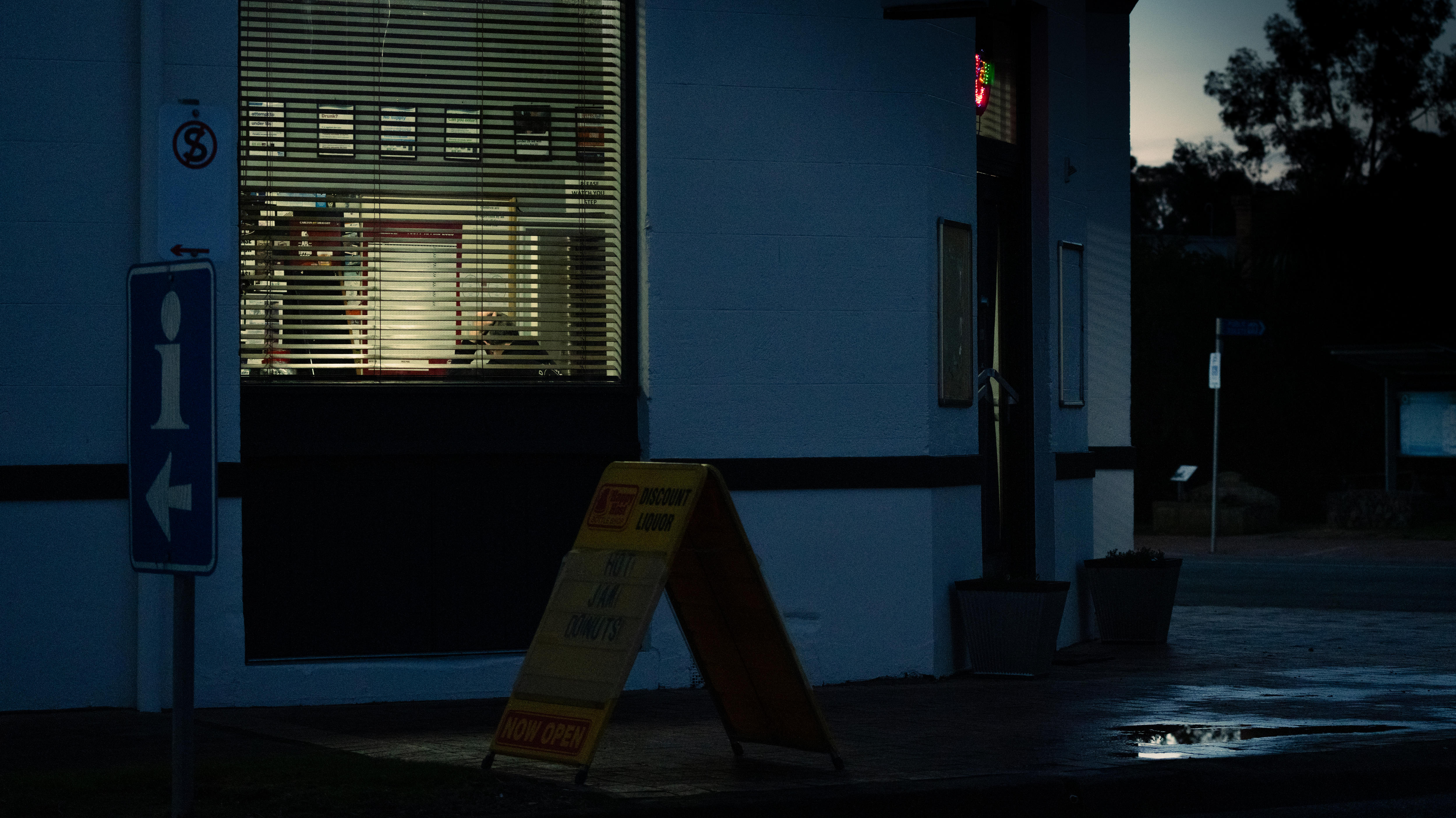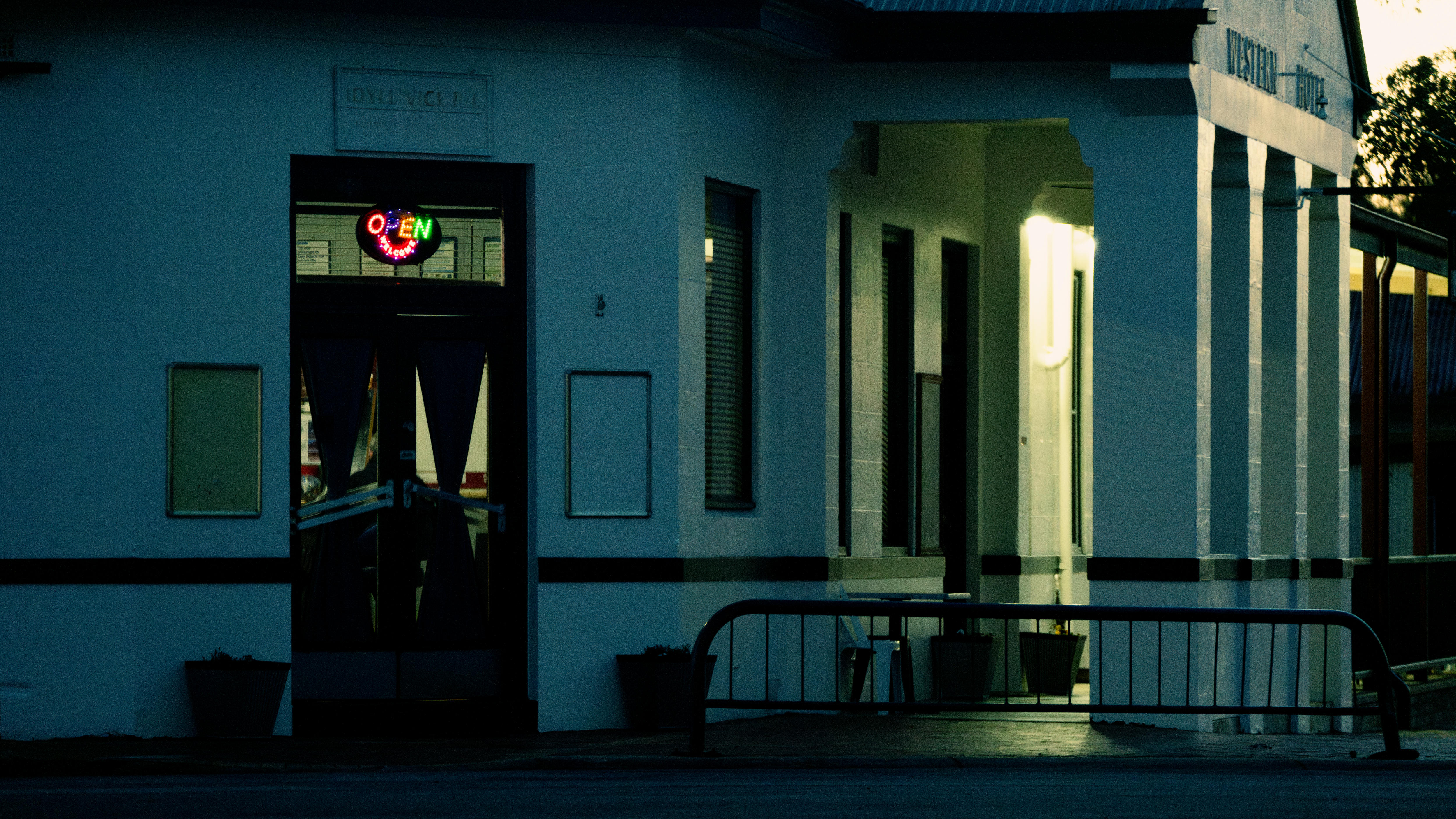 The town's only cop, Geoff Barcham, is pumped for information by the locals at the Western Hotel as he sits down to his weekly parma.